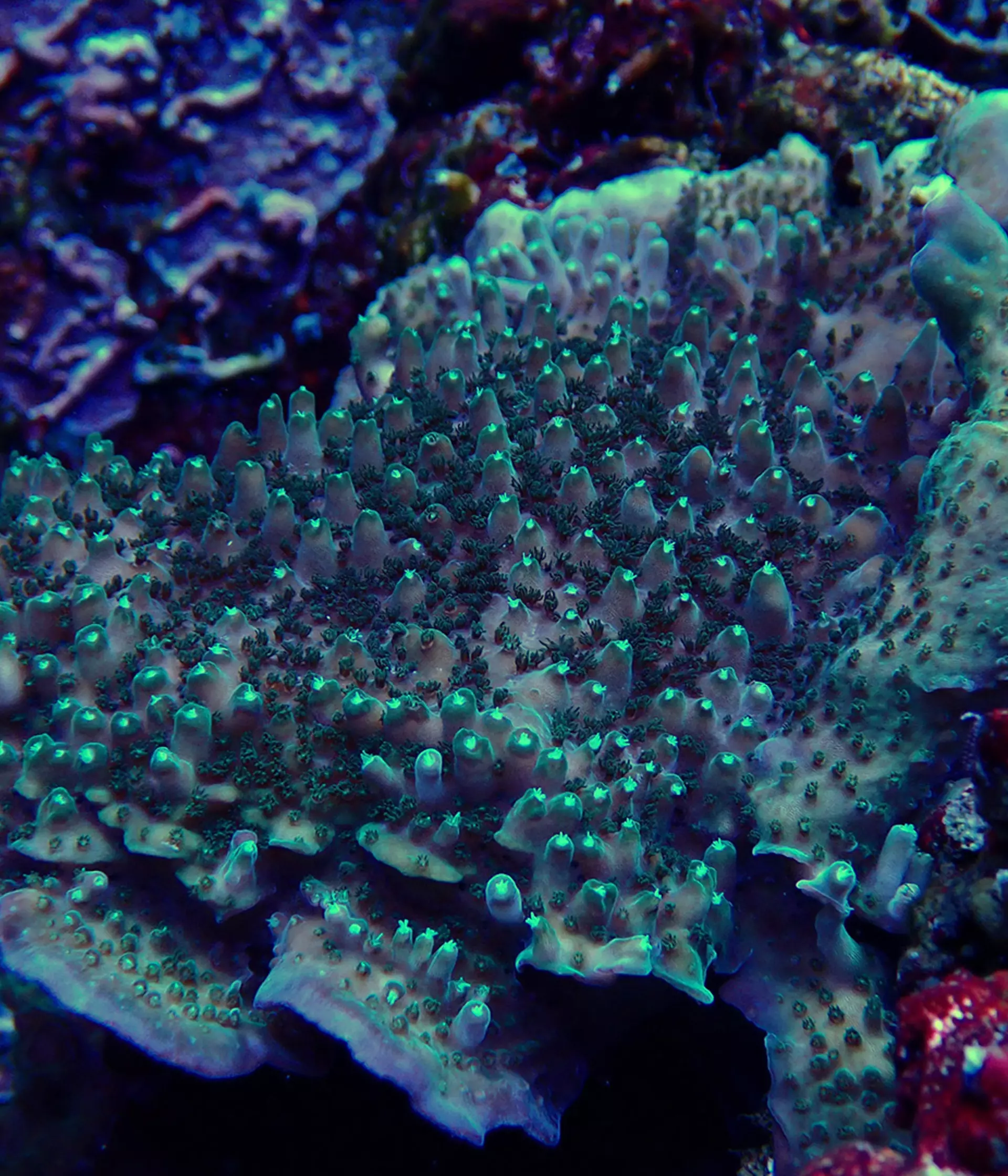 As the name suggests, staghorn corals are instantly recognisable, due to the structures that resemble the horns of a stag. These structures are actually made of a substance called ‘aragonite’ which is secreted by specialised cells located just above the coral skeleton.